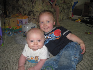 Love it when Lil'S plays with N. He brought over some blocks to show N how he can stack them.